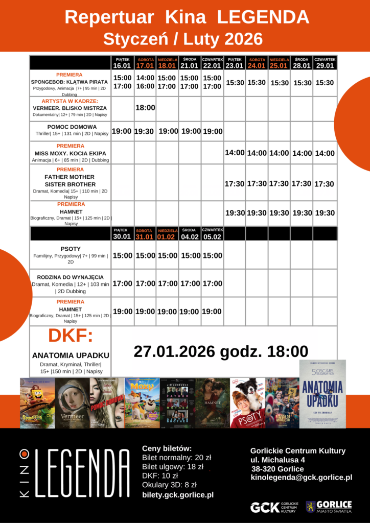 Bilety online do nabycia na stronie: bilety.gck.gorlice.pl